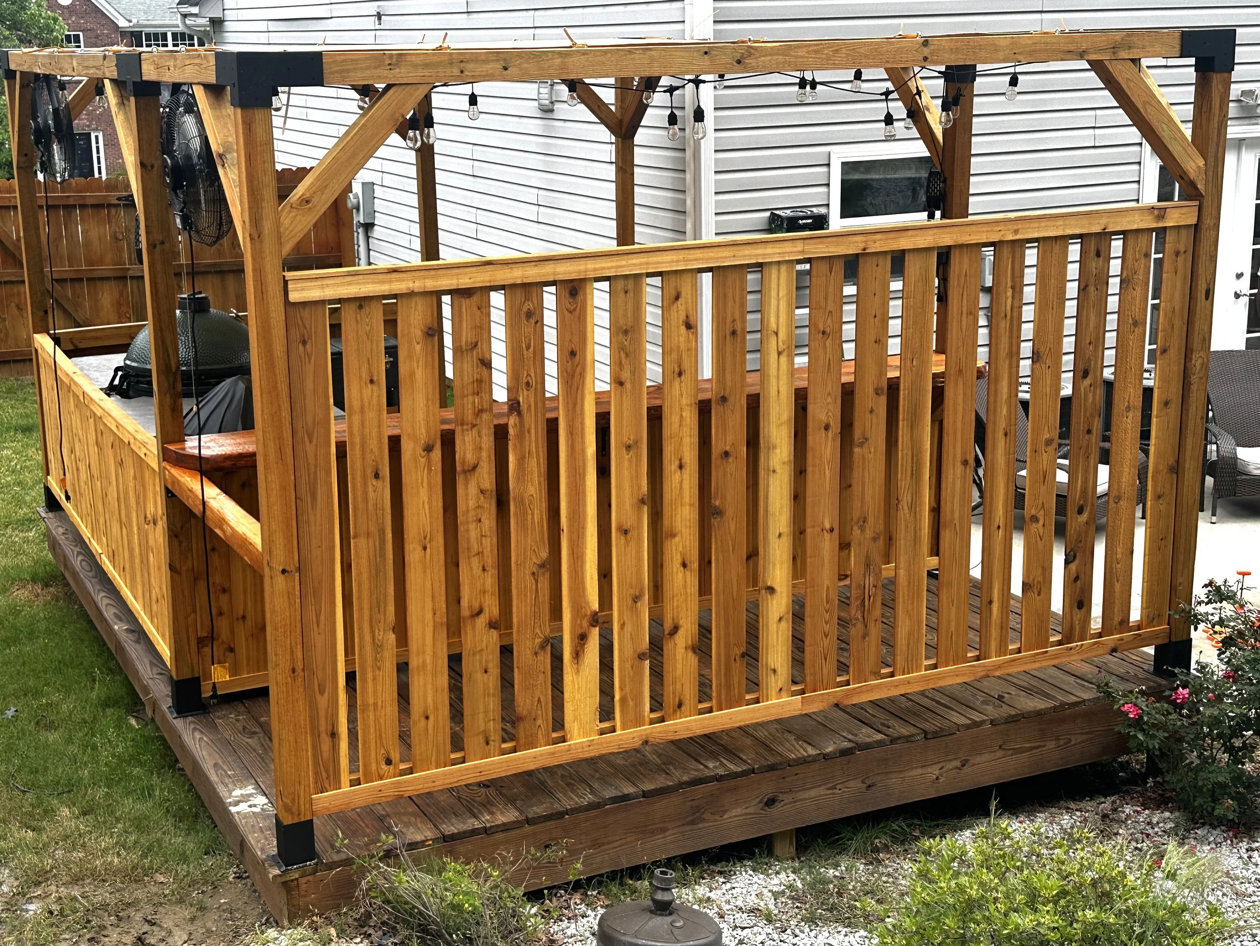 Privacy Panels $175.00 Deliver & Setup $350.00 Essential Pergola $649 $649.00 Custom Pergola $1,999.00 Fans Waterproof $95.00 String Lights $275.00 Seal Wood Penofin $175.00 Rustic Sawn $1,149.00 Wood Sealer $150.00 Smooth Country $1,350.00